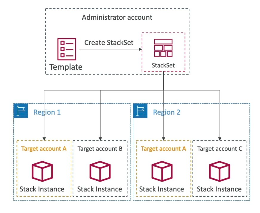 stacksets are the way to deploy stacks across multiple regions and accounts with single template