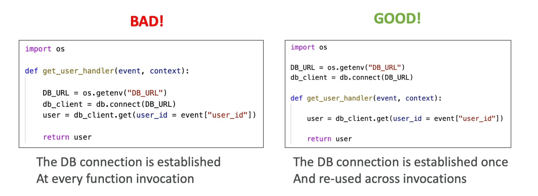 Execution context includes /tmp directory max 10GB of diskspace Permanent persistence → s3, temporary → /tmp For encryption you must have to go with KMS data keys