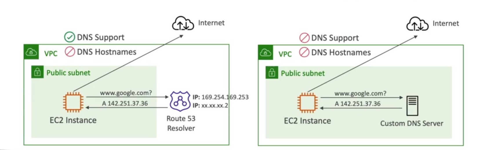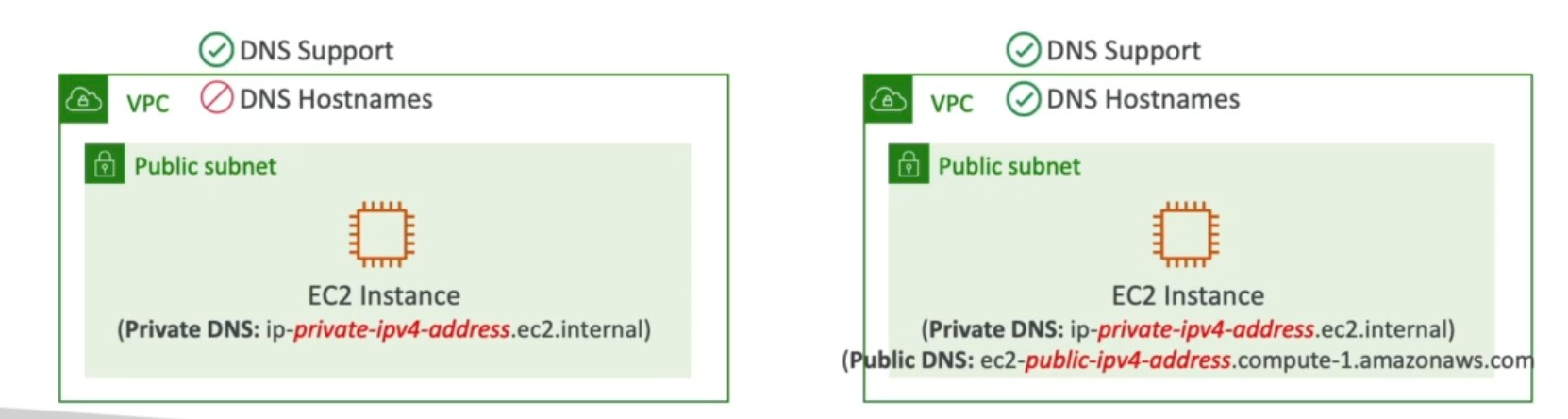 If Not dns support → The instances won’t talk with the Route53 resolver. The Route53 resolver. The private hosted zones are created under a VPC. If Not DNS hostnames → I would just not receive public DNS names for public instance. But Why its required for private zone is still unknown for me