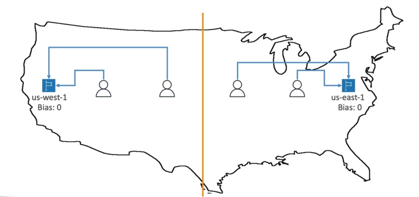 Latency Based - Latency based on how close users are between AWS regions