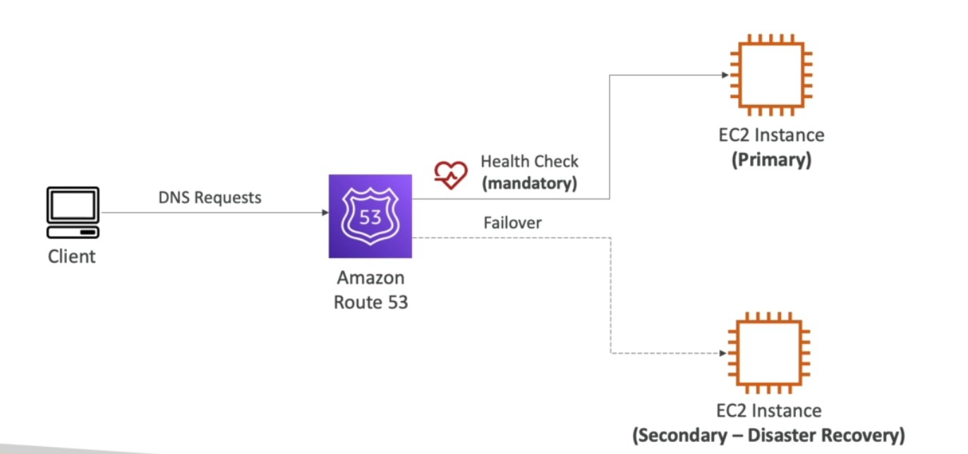 - You then configure in routing policy for a record, failover to a second record