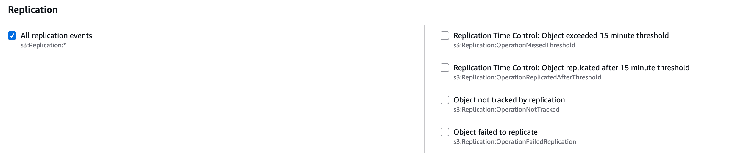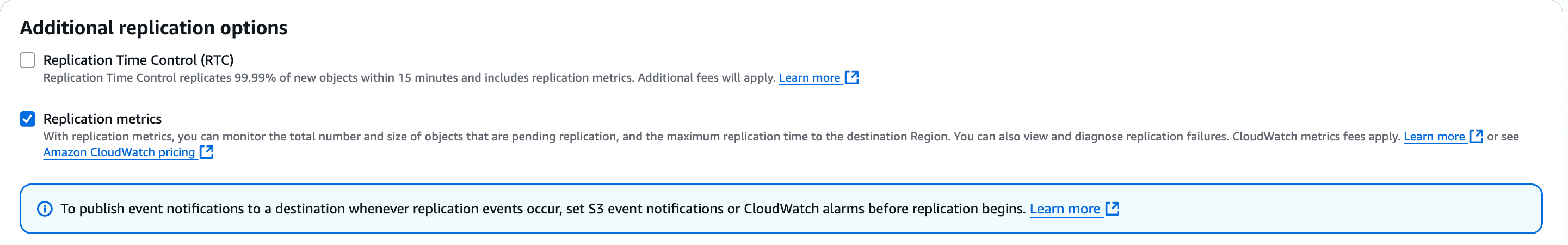 Replication Time Control for complaine and business requirements Specified on replication settings, provides SLAs on replication. Data gets replicated within 15 minutes.