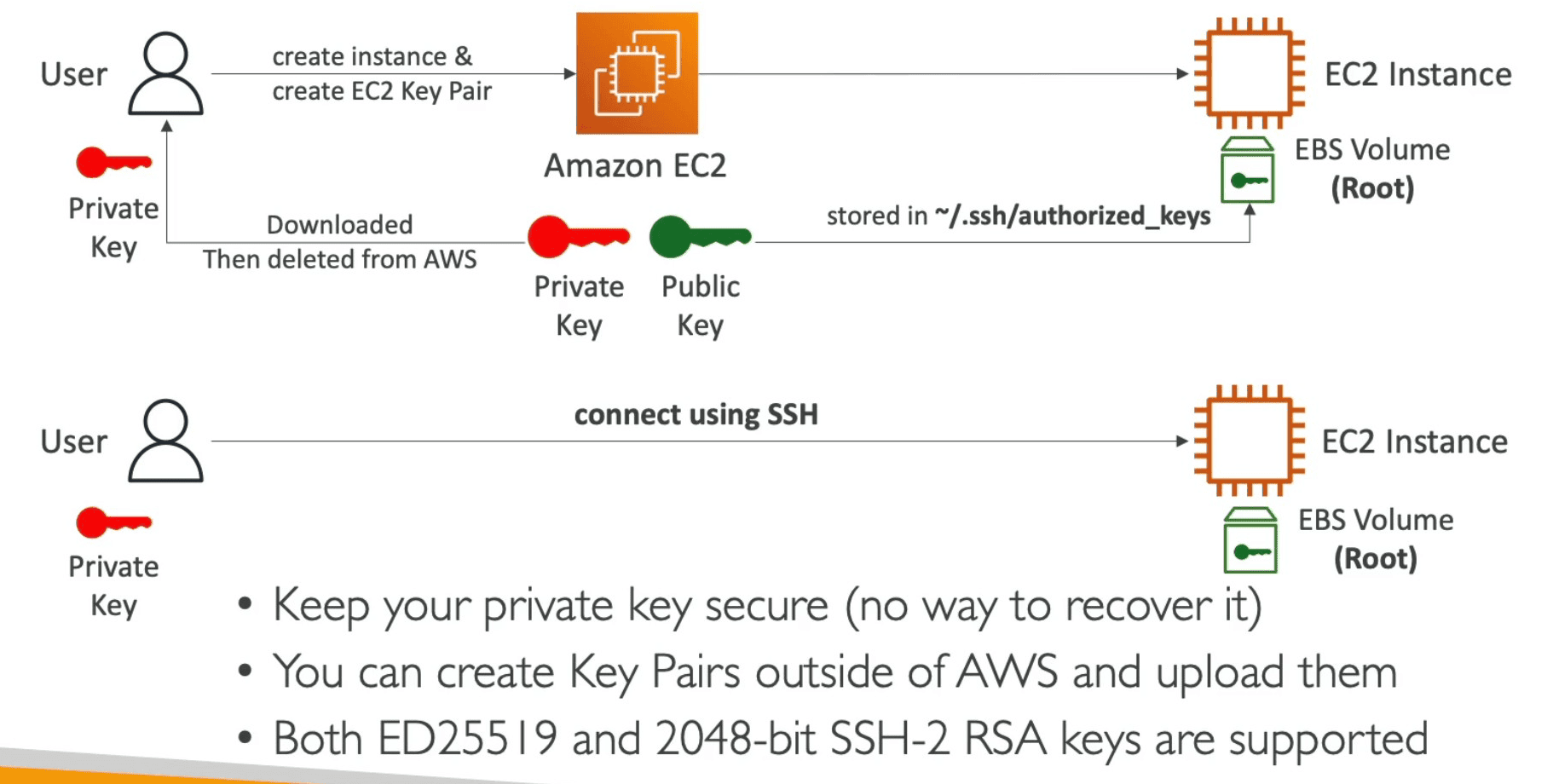 - If an AMI is created with a key pair, but if you try to launch with a new ami, you would have two key pairs at