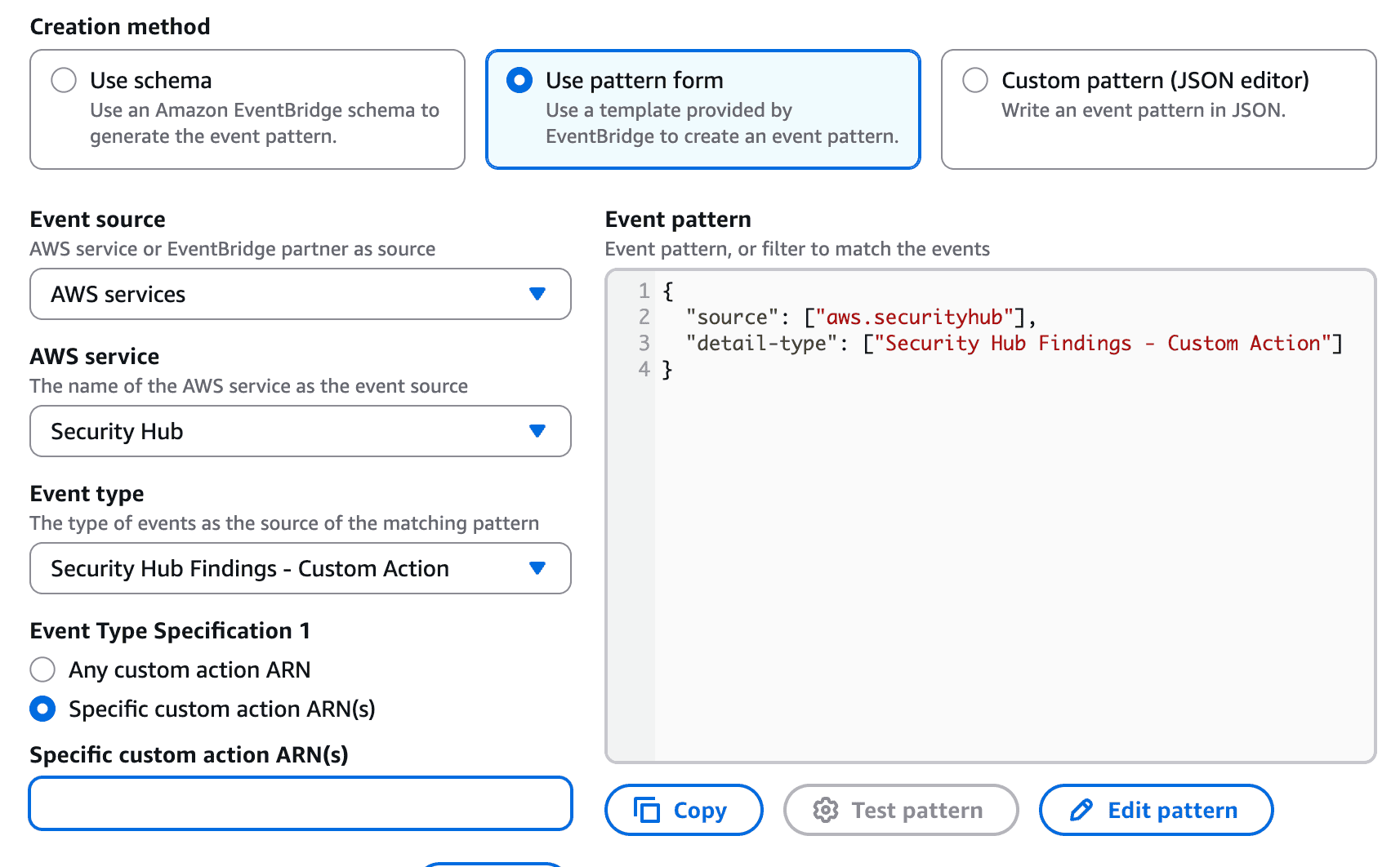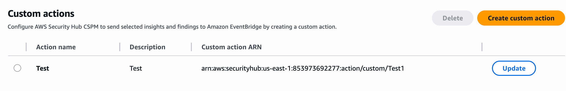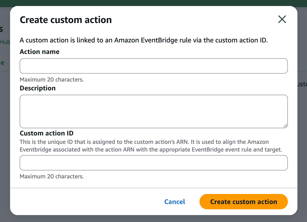 Send selected insights and findings to Amazon EventBridge by creating a custom action.