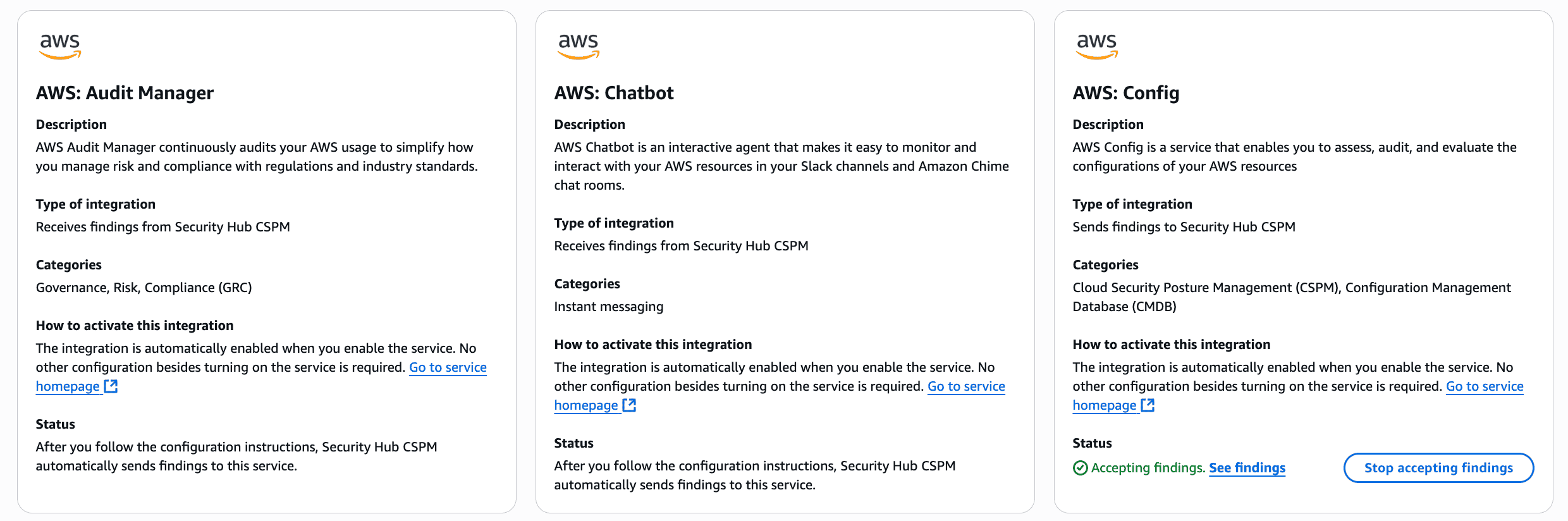 An integration is what that sends findings or receives findings to security hub cspm