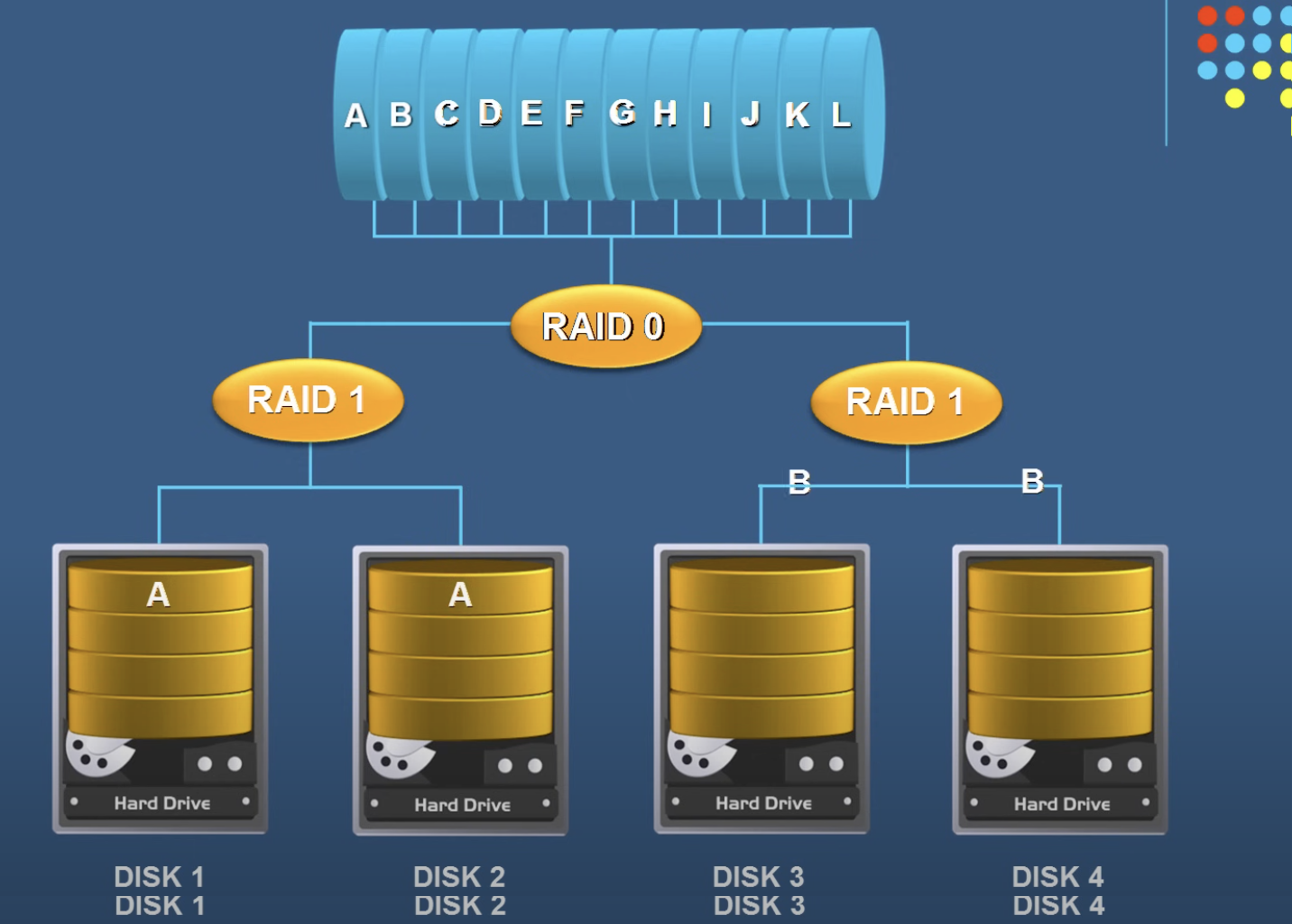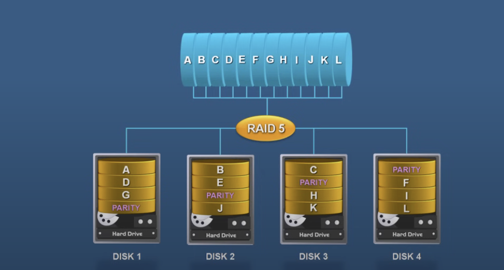 - If 4 disks of 4TB is used; only 3TB is used for actual storage
